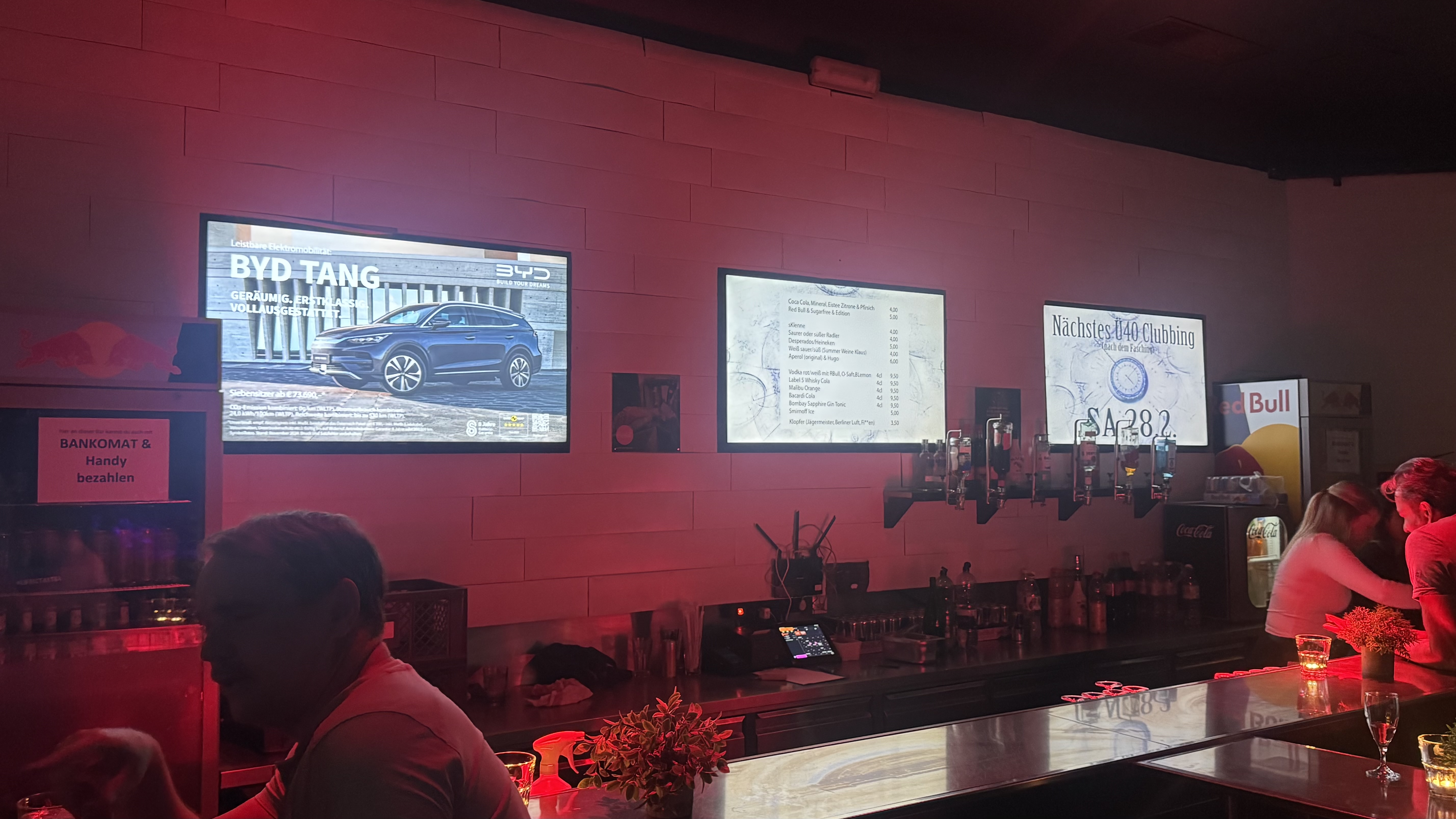 Außerdem wurden die Bildschirme hinter der Bar mit spannenden Informationen rund um BYD und seine innovativen Fahrzeugmodelle bespielt.